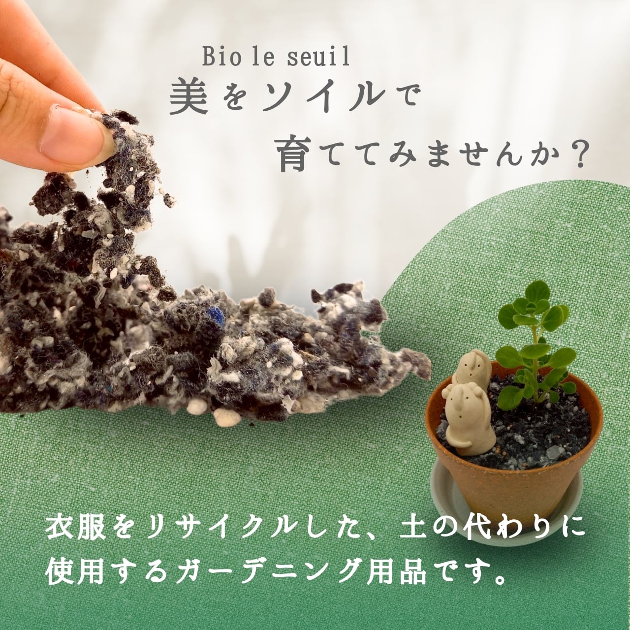衣服をリサイクルした、土の代わりに使用するガーデニング用品です。